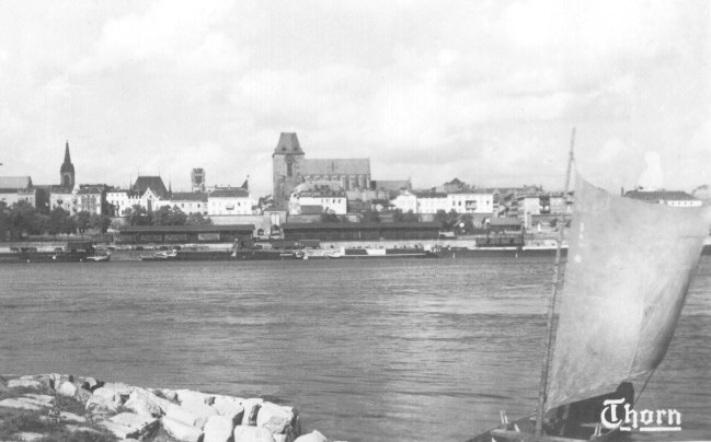 Photoansichtskarte, Thorn: Altstadt mit Segler, gelaufen 19.3.1940