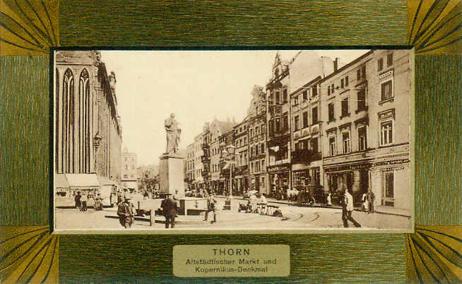 Verlag Justus Wallis, Thorn: THORN Altstädtischer Markt und Kopernikus-Denkmal, gelaufen 25.07.1908