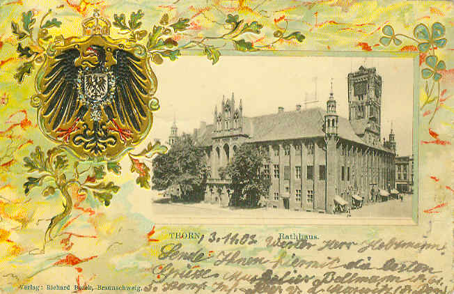 Prägekarte, Verl. Rich. Borek, Braunschweig: THORN. Rathhaus., gelaufen 04.11.1903