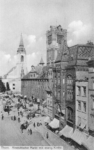 B. Westphal, Thorn: Breitestraße, Blick auf Rathaus und Evang. Kirche, um 1914