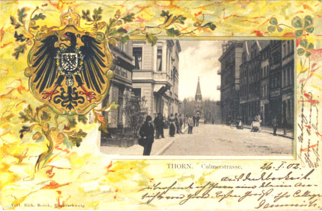 Prägekarte, Verl. Rich. Borek, Braunschweig: Thorn, Culmerstrasse, Soldatenbrief o.M. 26.01.1902