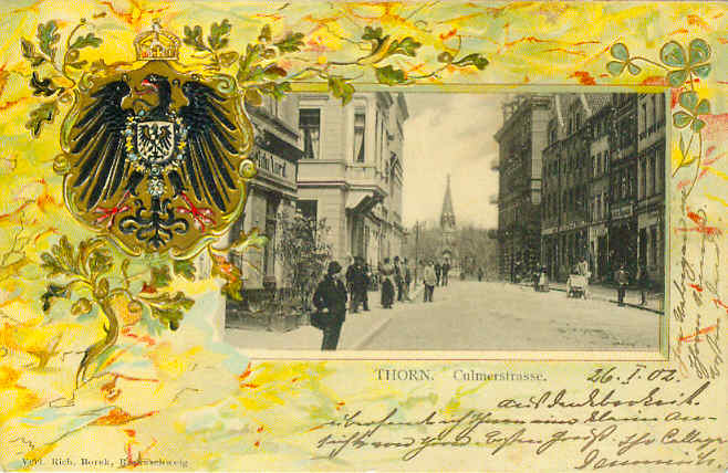 Prägekarte, Verl. Rich. Borek, Braunschweig: Thorn, Culmerstrasse, Soldatenbrief o.M. 26.01.1902
