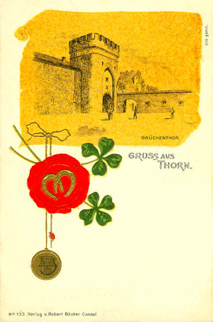 Verlag v. Robert Bäcker Cassel, Nr. 133 GRUSS AUS THORN, Brückenthor, gelaufen 17.02.1902