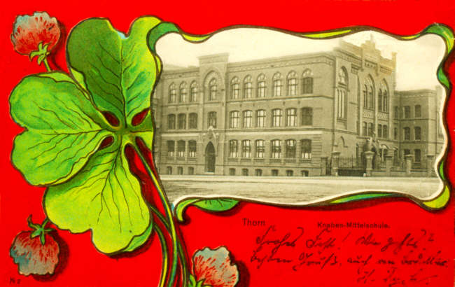 E.F. Schwartz, Buchhandlung, Thorn: Thorn - Knaben-Mittelschule, gelaufen 8.12.1902