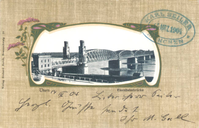 Richard Borek, Braunschweig 18: Thorn, Eisenbahnbrücke, gelaufen 13.03.1904