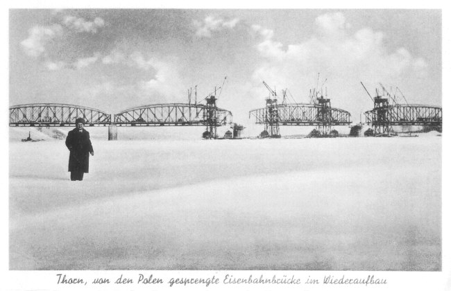 Thorn, von den Polen gesprengte Eisenbahnbrücke im Wiederaufbau, nicht gelaufen