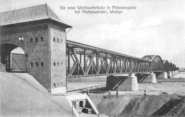 Kunstverlag Wendt Groll, Marienwerder: Die neue Weichselbrücke in Münsterwalde bei Marienwerder, Westpr., 22.07.1909 [O] Diese Brücke wurde Ende der zwanziger Jahre des vorigen Jahrhunderts hier von den Polen abgebaut und als neue Strassenbrücke in Thorn installiert. zurück zum Register der erfassten Karten zurück zu den Miniaturen