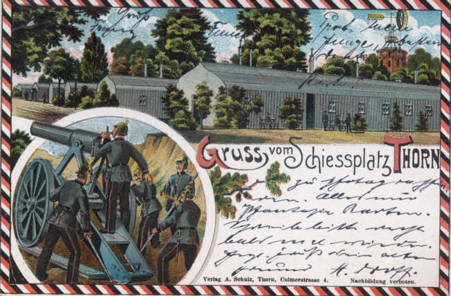 Gruss vom Schiessplatz Thorn, gelaufen 17.06.1905 nach Manchester