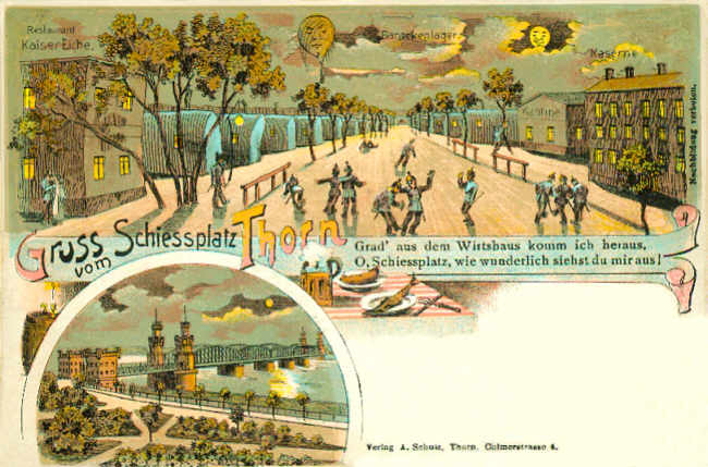 Verlag A. Schulz, Thorn, Culmerstrasse 4: Gruss vom Schiessplatz Thorn, gelaufen 22.03.1909