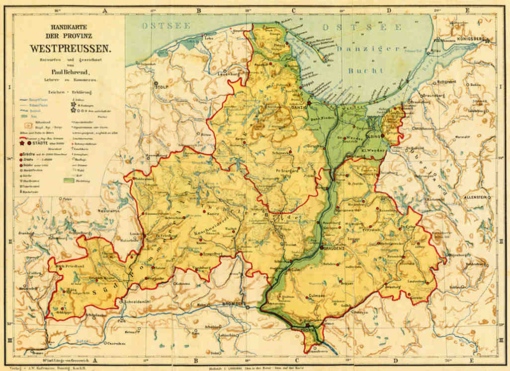 Handkarte der Provinz WESTPREUSSEN, entworfen und gezeichnet von Paul Behrend, Lehrer [I]