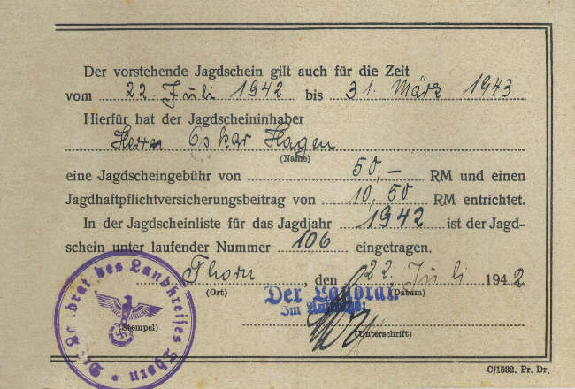 Jagdschein Oskar Hagen, Verlängerung 1942