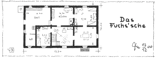 Bei der Rekonstruktion des Grundrisses hat mir Bruder Fritz (93) beigestanden. 7 Jahre älter ist er und konnte deutlichere Eindrücke aus jener Zeit einbringen. Mitten im Bild