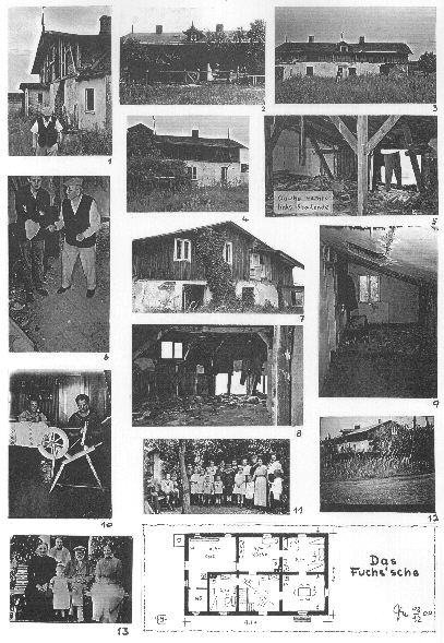 Nr. 4 und 12 sehen wir das Haus rückseitig, hier das Stall-Ende, wie es heute dasteht. Das Bild Nr. 7 zeigt den Nordgiebel (über dem Wohnteil). Hier ist noch die Verschalung erhalten.