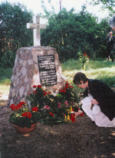 Am denkwürdigen 4. Mai erwarteten wir am westlichen Dorfeingang den Reisebus aus Deutschland, um dort bei dem großen Ehrenmal der polnischen Märtyrer von 1939 zu gedenken. Wir wußten, daß das sehr beachtet würde, und so war es nicht verwunderlich, daß sich fast alle polnischen Teilnehmer unseres Festes an dieser Stelle zu uns gesellten. Darauf strömten Menschen und Fahrzeuge dorfeinwärts bis zu dem Abwege der zum Friedhof führte. Dort, auf einem Stück Brachland, konnten die Fahrzeuge geparkt werden. Der "Schnauzbart" übernahm beflissen die Wache.
