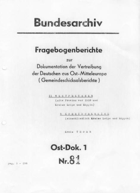Ost-Dok.1 Nr. 81, Fragebogenberichte Kreis Thorn, Titelblatt.