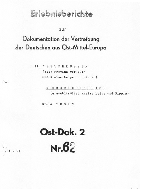 Ost-Dok.2 Nr. 62, Erlebnisberichte Kreis Thorn, Titelblatt.