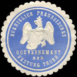 Königlich Preussisches Gouvernement der Festung Thorn blau, weiß, geprägt |