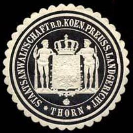 Staatsanwaltschaft b.d. Koen. Preuss. Landgericht Thorn schwarz, weiß, geprägt |
