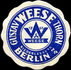 Gustav Weese Thorn Niederlassung Berlin N 4 dunkelblau auf weiß |