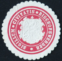 Sigillum Civitatis Bischofswerder weinrot, weiß, geprägt |