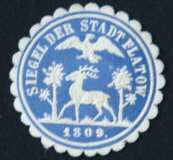Siegel der Stadt Flatow mittelblau, weiß, geprägt |