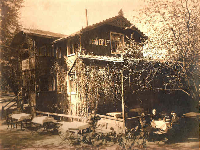 Entstehungsjahr: ca. 1910 Photograph: ???? Maße: 12,0 x 17,8 cm Motiv: Gaststätte Jacob Dill Beschriftung hinten: .... Privatbesitz: Volker Krüger |