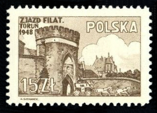 Polska 1948 25 Zł A. Suchanek Zjasd Filat. ToruŃ 1948 Philatel. Congress 1948 Thorn Fischer 468, SG 628 im Privatbesitz |