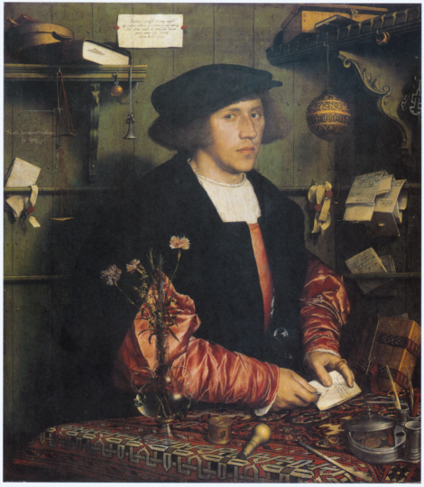 Giese, Georg Abb. 240: Bildnis des Kaufmannes Gisze Für Vollbildansicht bitte Bild anklicken! Aus: Hans Holbein, Oskar Bätschmann und Pascal Griener, [Übers. Aus dem Engl.: Dieter Kuhaupt.]. – Köln: DuMont, 1997 ISBN 3-7701-3923-2 Seine Hauptauftraggeber in diesen Jahren wurden jedoch Höflinge und die deutschen Kaufleute des Stahlhofes. Diese reichen Händler, Mitglieder der Hanse, fanden in Holbein einen Landsmann von hoher Kunstfertigkeit, der ihre Sprache verstand. Daß er in der Lage war, ihre unterschiedlichen Wünsche zu erfüllen, ist evident, wenn man zwei dieser Bildnisse vergleicht: das des Georg Gisze (Abb. 240) und das des Derich Borii (Abb. 3o). Das letztere ist auffallend schlicht. Mit Zustimmung des Modells hat Holbein einen Mann dargestellt, der sich ganz ungezwungen und natürlich präsentieren will; jedes Detail ist eine Untertreibung. Der Porträtierte ist nahe an den Betrachter herangerückt und in einen offenen Raum hineingestellt, was eine direkte, lockere Kommunikation zwischen dem Kaufmann und dem Betrachter ermöglicht. Der lebensvolle Ausdruck des Gesichts, das kaum von Todesreflexionen gestreift wird, ist für die Stahlhof-Bildnisse von größter Wichtigkeit, die weit vorn höfischen Porträt und seiner komplexen Inszenierung entfernt sind. Dagegen verlangte Georg Gisze, ein stolzer Kaufmann, in seinem Bildnis das genaue Gegenteil, die verschwenderische Anhäufung von Symbolen der Macht und der Wissenschaft. Alle Regeln der Perspektive mißachtend, hat Holbein den Raum verflacht und auseinandergezogen, um möglichst viele Symbole unterzubringen und diesen Kaufmann und Nouveau-riche mit einer persönlichen lkonographie auszustatten. Briefe von Geschäftsfreunden umgeben ihn, und jeder wiederholt den Namen des mächtigen Mannes, den die Korrespondenten erreichen wollten: »Dem erszamen Jergen Gisze to Lunden in engelant« steht auf dem Schreiben in seiner Hand. Ähnlich bürokratische Metaphorik setzt Jan Gossaert meisterlich auf dem Porträt eines geradezu mit Dokumenten eingeschneiten Kaufmanns ein (Abb. 239). Holbeins Auftraggeber wollte jedoch einen anderen Aspekt seines Charakters herauskehren. An der Wand klebt ein Gedicht, das in pedantischem Griechisch und Latein verkündet: »DISTIKON. In imaginem Georgii Gysenii / Ista refert vultus, quam cernis, Imago Georgi / Sic oculos vivos, sic habet ille Genas / Anno aetatis suae XXXIII Anno Dom. 1532« - »Was du erblickst, ist Georgs Bildnis, das seine Züge vorstellt, so lebendig ist sein Auge, so sind die Wangen geformt«. Das Bildnis spricht zum Betrachter, rühmt seine Lebensechtheit. Die zweite wichtige Inschrift, links, ist Giszes Wahlspruch: »Nulla sine merore voluptas« - »Kein Vergnügen ohne Gram«, daneben eine Waage, deren Bedeutung in diesem Kontext auf der Hand liegt. Die gewollt profunde Symbolik steigert noch den prätentiösen Charakter der Szene. Der Wahlspruch ist von Gisze sogar unterschrieben, als beanspruche er Urheberrecht an der Konstruktion dieser pompösen Persona. Die Vielfalt der die Figur umringenden Symbolgegenstände lenkt das Auge fast vom eigentlichen Porträt ab. Das ursprünglich frontal konzipierte Gesicht wurde von Holbein später nach rechts gedreht, die Nase erscheint im Profil, aber die Augen sind auf der Bildebene verblieben, damit wir keines Details verlustig gehen. Die Verzerrung des Gesichts reflektiert die Verzerrung des gesamten Bildraums. Reglos, fast passiv scheint Gisze sich unserem Blick wie ein Objekt in einem Schaukasten darzubieten. Er schaut nach links, jeden direkten Blickkontakt mit dem Betrachter vermeidend. Das Gesicht in diesem Porträt wirkt beinahe nebensächlich, was nicht nur dem ikonographischen Gehalt des Bildes zuzuschreiben ist, sondern ebensosehr der meisterlichen Darstellung der Gegenstände. Bravourös gibt Holbein die Texturen wieder und setzt zur Schaffung der tonlichen Harmonie der Tafel nicht weniger als fünf Farben ein - die Erfahrungen seines Frankreichaufenthaltes, eingeflossen schon in die Lais Corinthiaca, tragen Früchte. Die gläserne Vase im Vordergrund stellt die Virtuosität des Künstlers heraus, während die delikat gemalten Nelken Giszes bevorstehende Hochzeit anzeigen.(86)_________________________________ (86) Die roten Nelken sollen offenbar auf die kommende Hochzeit des Abgebildeten hindeuten, der 1535 nachweislich eine Christine Krüger aus Danzig heiratet; Campbell 1990, S. 34; zu den Stahlhof-Porträts Thomas S. Holmann, "Holbeins’s Portraits of the Steelyard Merchants: An Investigation", in: Metropolitan Museum Journal, 14, 1980, S. 139-158; Deborah Markow, "Hans Holbein’s steelyard portraits reconsidered", in Wallraf-Richartz-Jahrbuch, 40, 1978, S.43-47;Roskill/Harbison 1987; Rowlands 1985, Nr.74 (Gisze) u. 77 (Born). |
